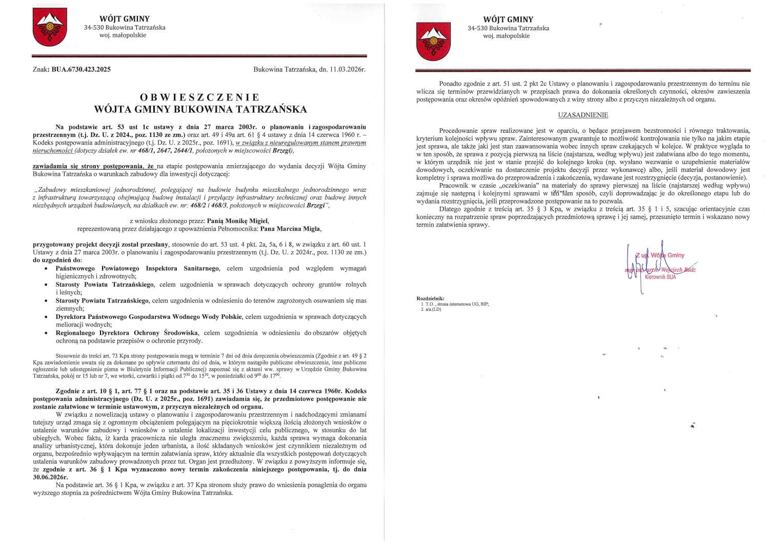 Obwieszczenie z dnia 11.03.2026 r. Wójta Gminy Bukowina Tatrzańska znak: BUA.6730.423/file/get/aktualnosci/2025/01/Obwieszczenie_uzgodnienia_BUA.6730.423.2025.pdf.2025