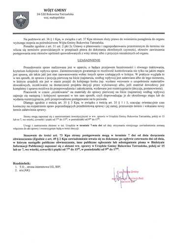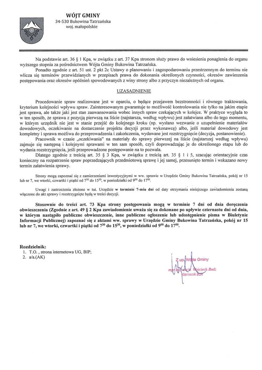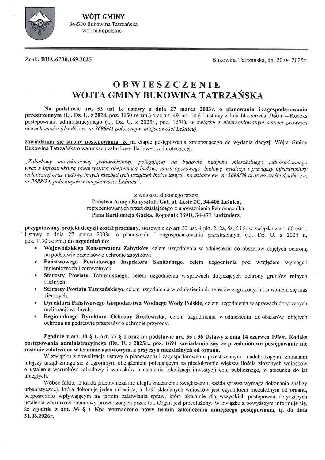 Obwieszczenie z dnia 20.04.2026r. Wójta Gminy Bukowina Tatrzańska znak: BUA.6730.169.2025