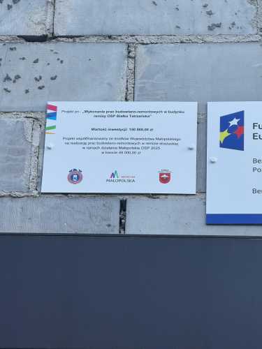 Gmina Bukowina Tatrzańska otrzymała pomoc finansową w 2025 r. z budżetu Województwa Małopolskiego, w ramach działania ,,Małopolskie OSP 2025", na realizację zadania pn.: "Wykonanie prac budowlano-remontowych w budynku remizy OSP Białka Tatrzańska".