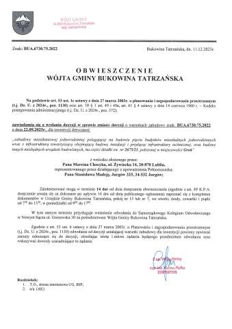 Obwieszczenie WGBT z dnia 11.12.2025r. o wydaniu decyzji o zmianie decyzji o warunkach...