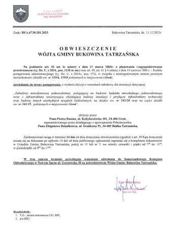Obwieszczenie WGBT z dnia 11.12.2025r. o wydaniu decyzji ustalającej warunki zabudowy,...