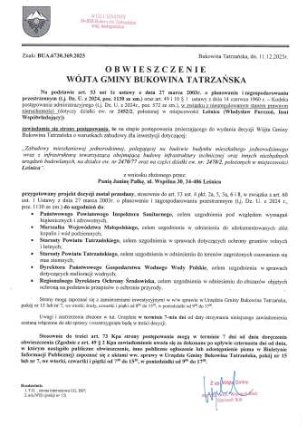 Obwieszczenie WGBT z dnia 11.12.2025r. o wydaniu decyzji o WZ, dot. postępowania o WZ,...